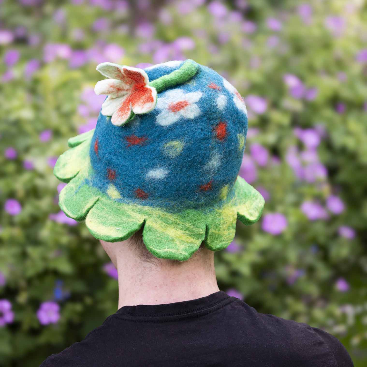 This fabulous flower hat will make you a hit at the festivals! A definite for your festival outfit, this fun felted design features petals galore, plus an extra bouncy stem for even more flower power!