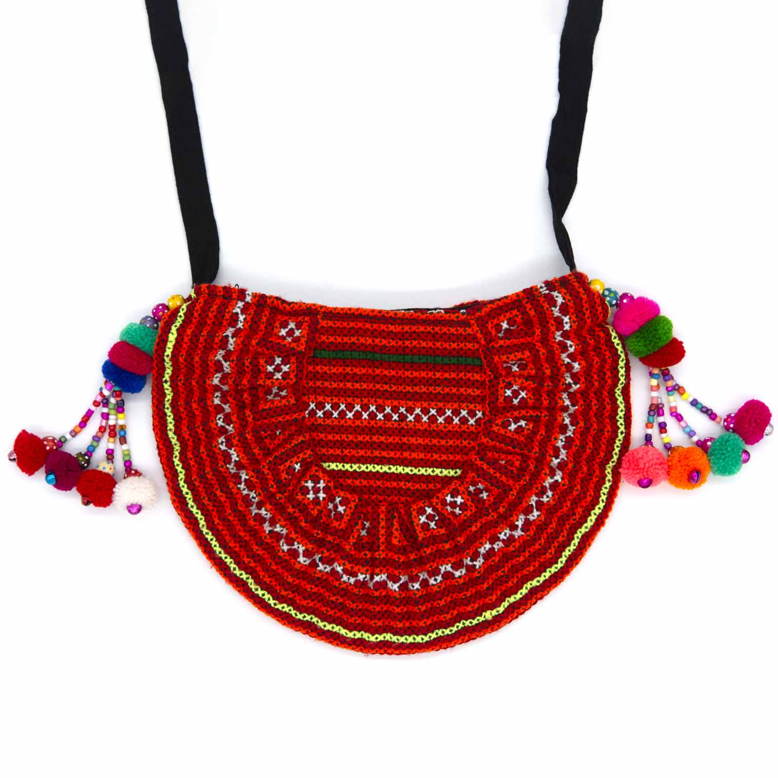 Everything about these bags is bold - vibrant fabrics, bright pom poms, colourful beads, jangling bells...you won't be missed if you have your hill tribe bag with you! Each bag is fully lined and has a secure zip fastening.