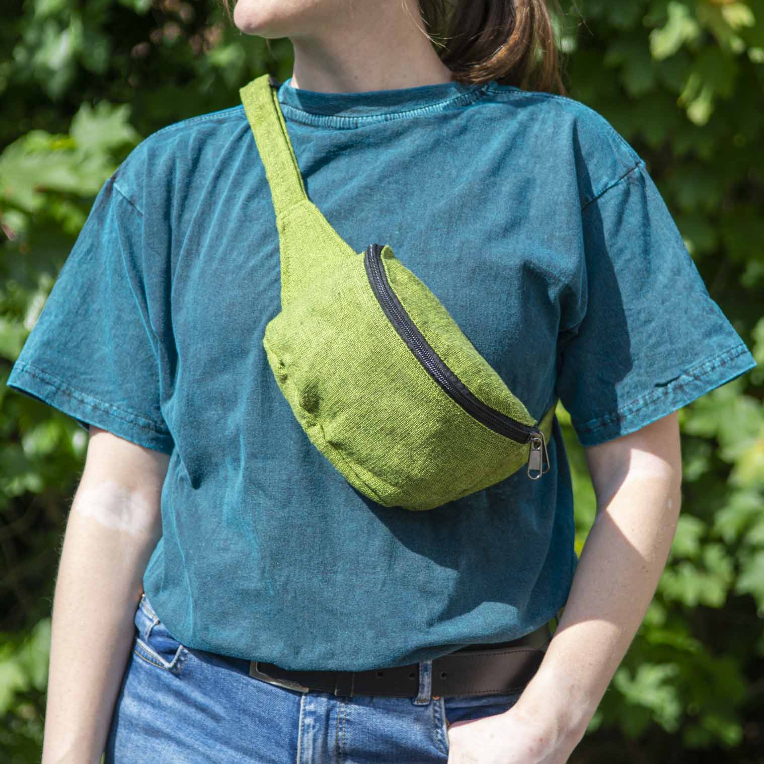 Tough, heavy cotton bum bag in mixed single colours, with adjustable strap and heavy duty plastic clip. Has a spacious single compartment with two zips.