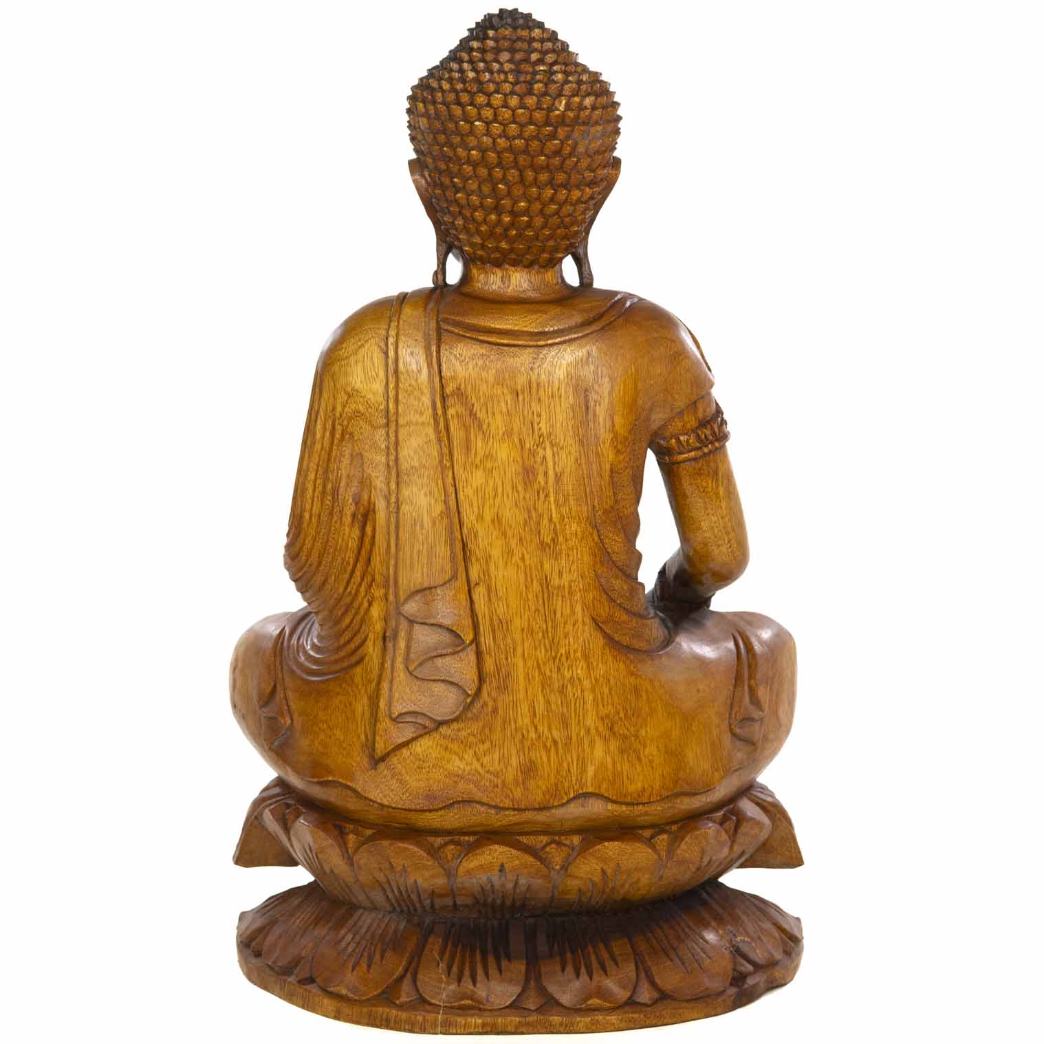 This 80cm seated Buddha has been carefully and expertly hand carved on the island of Bali. Each of these incredible works of art is created from a solid piece of suar wood. When depicting Buddha, the positioning of the hands (Mudra) is very important and different mudra represent different things.