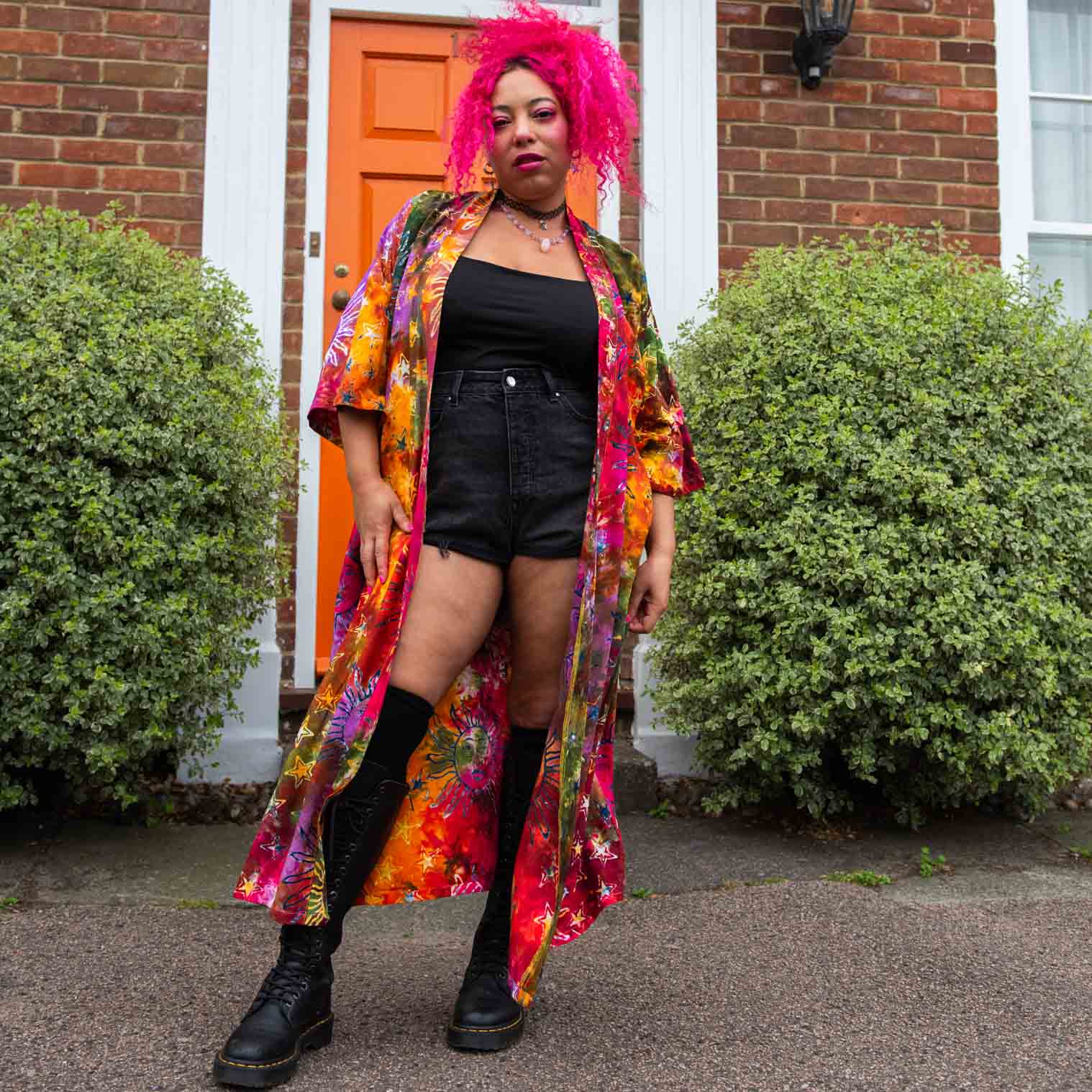 These beautiful loose and lightweight gowns feature our ever popular celestial design. They are super stylish and have a long waist belt plus side pocket. Ideal as a summer cover up on those cooler evenings, to protect from the sun or just for lounging about in!