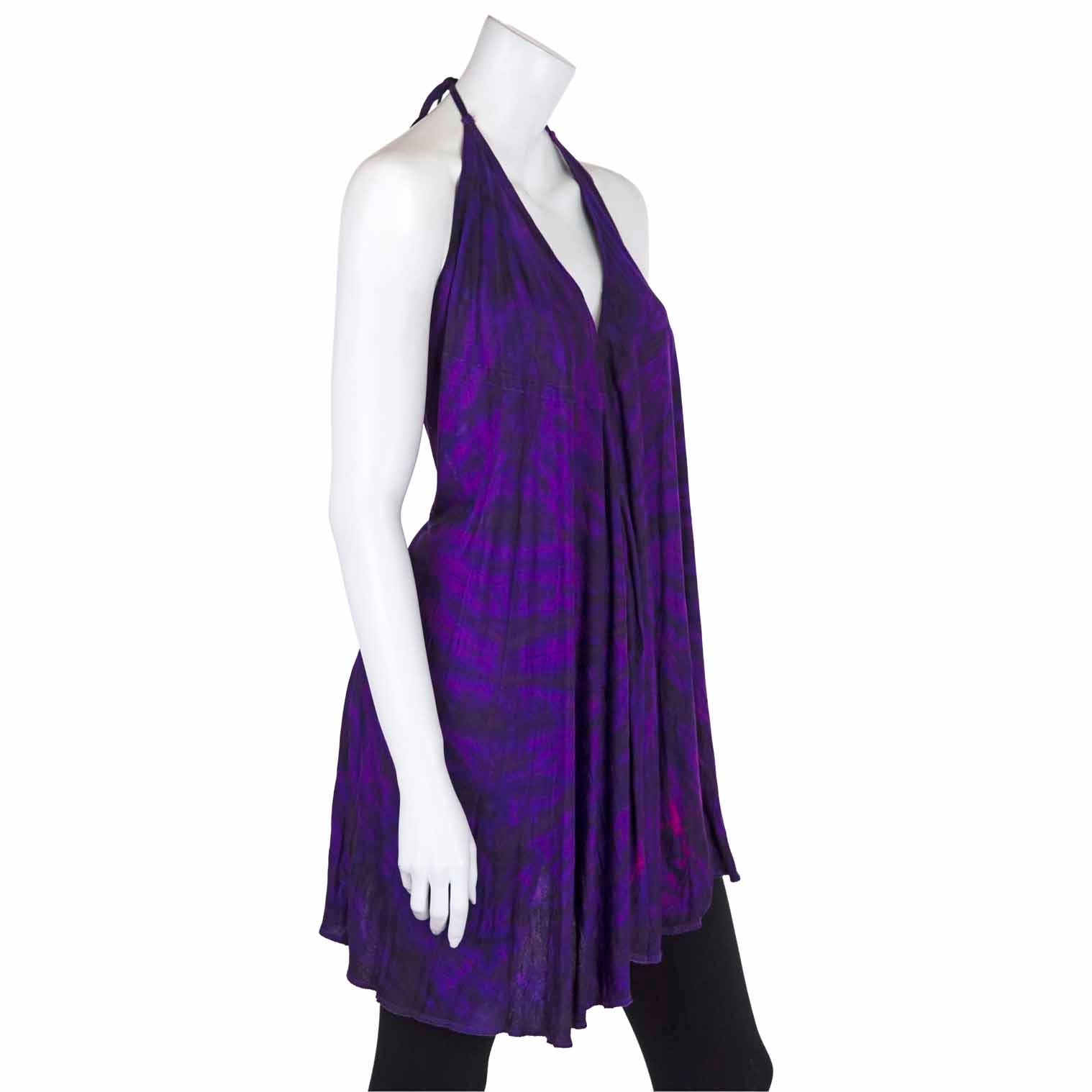 Unleash your inner hippie and style this tie dye piece as either a floaty dress or a long top. It ties up as a halter neck and would be the perfect additional to your festival wardrobe.