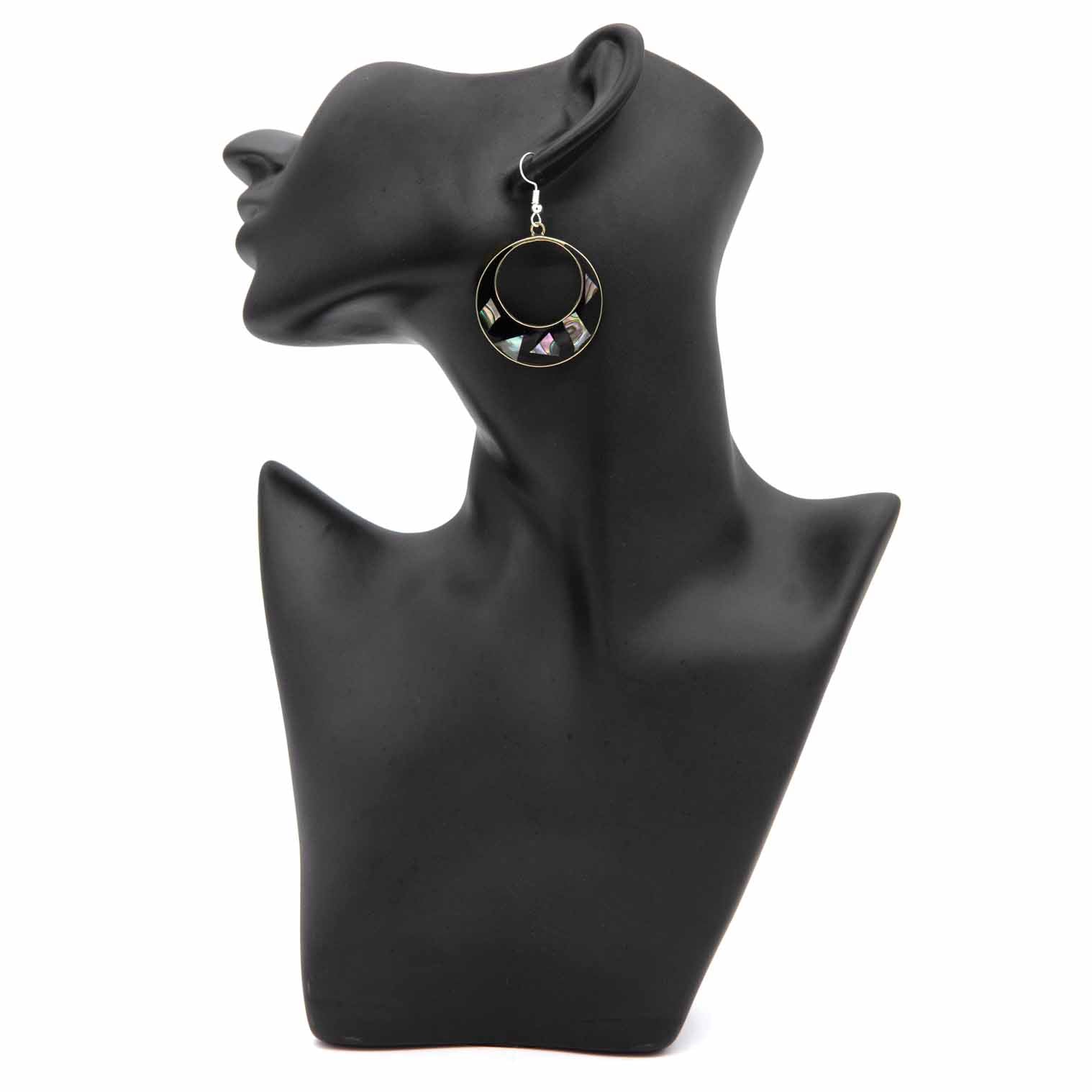 Beautiful earrings from Mexico. These eye catching hoop earrings are made with segments of abalone shell. Silver plated fixings with Alpaca metal alloy. Silver plated hooks.