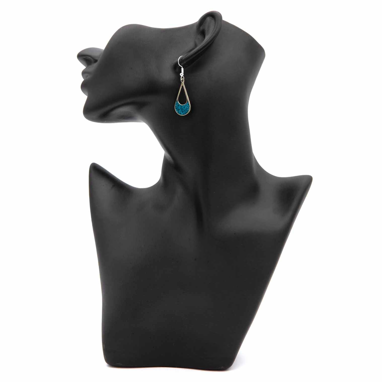These large cutaway tear drop earrings are handmade in the town of Taxco, Mexico. They are made from Alpaca silver metal alloy and are available in a great mix of colours. Silver plated hooks.