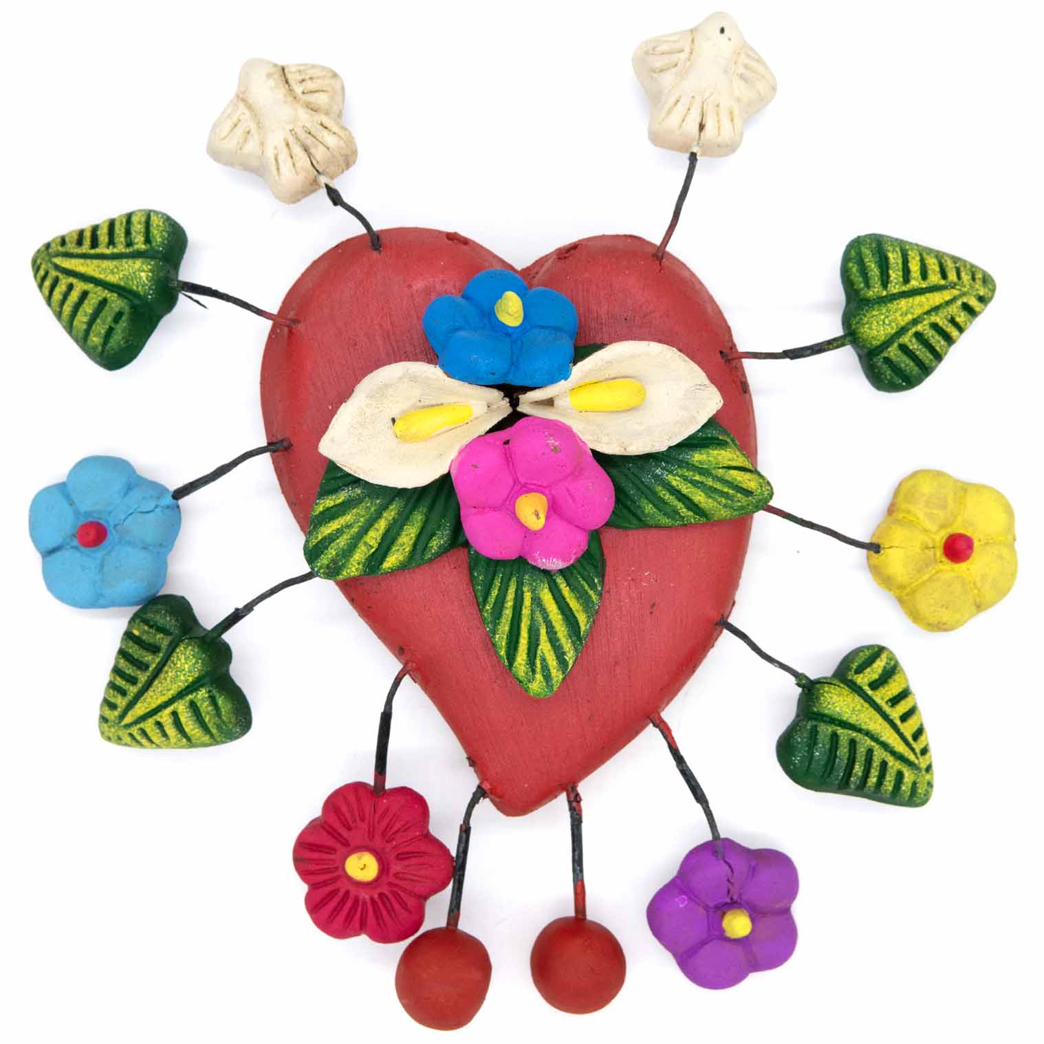 This bright wall plaque will win your heart! Surrounded by colourful ceramic flowers and white doves, the bold red heart takes centre stage in this wall plaque. It comes with a hanging loop for easy display.