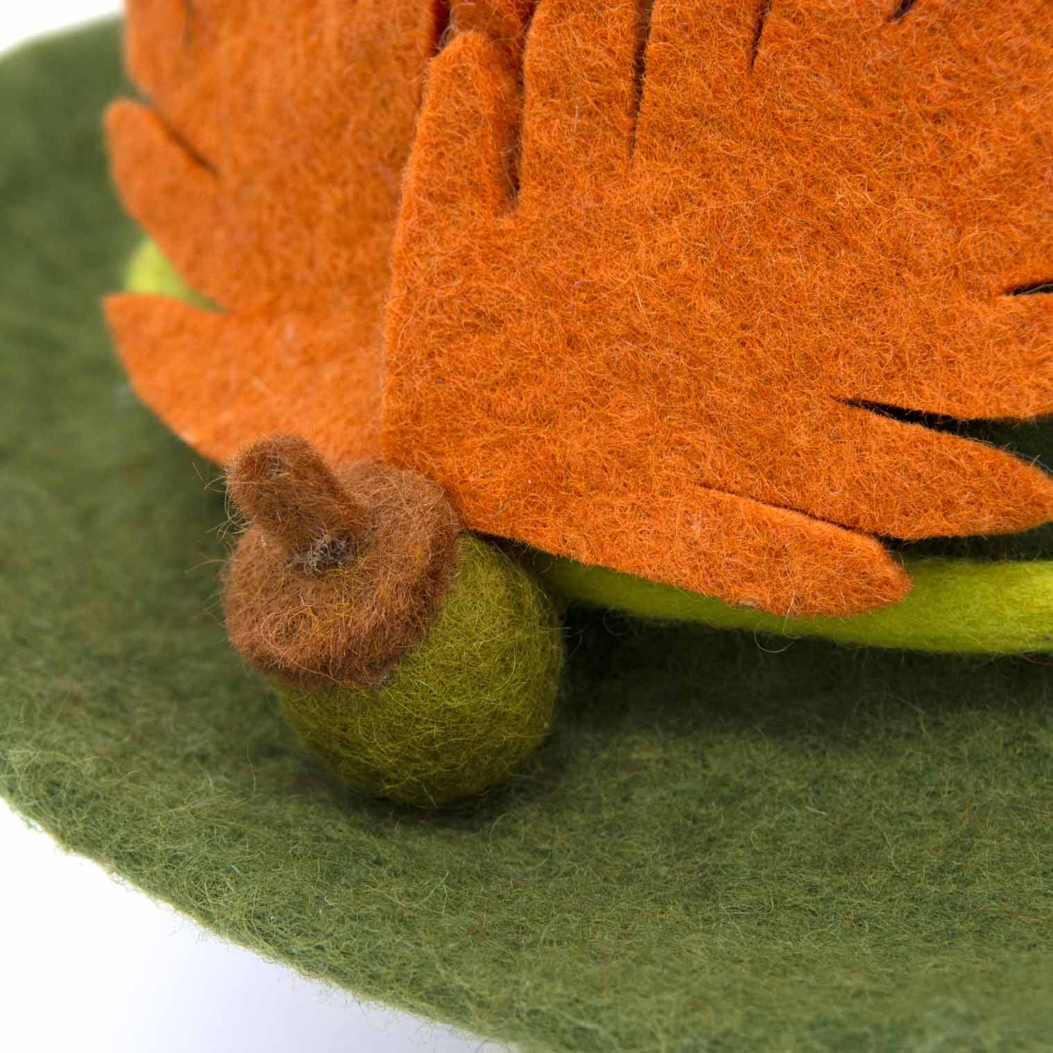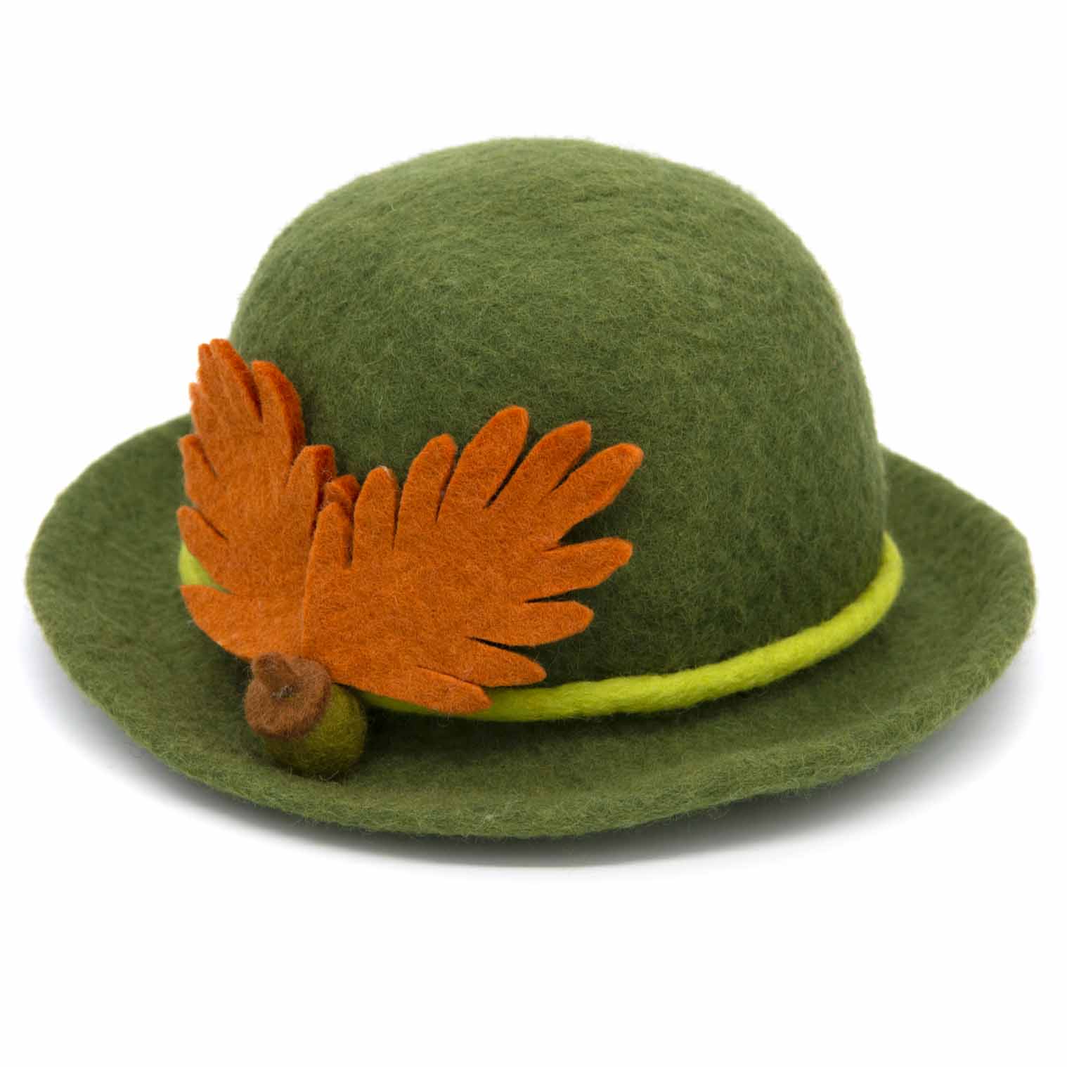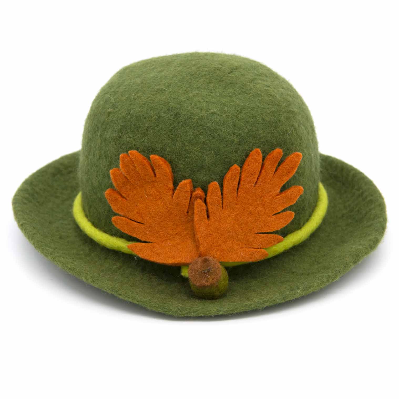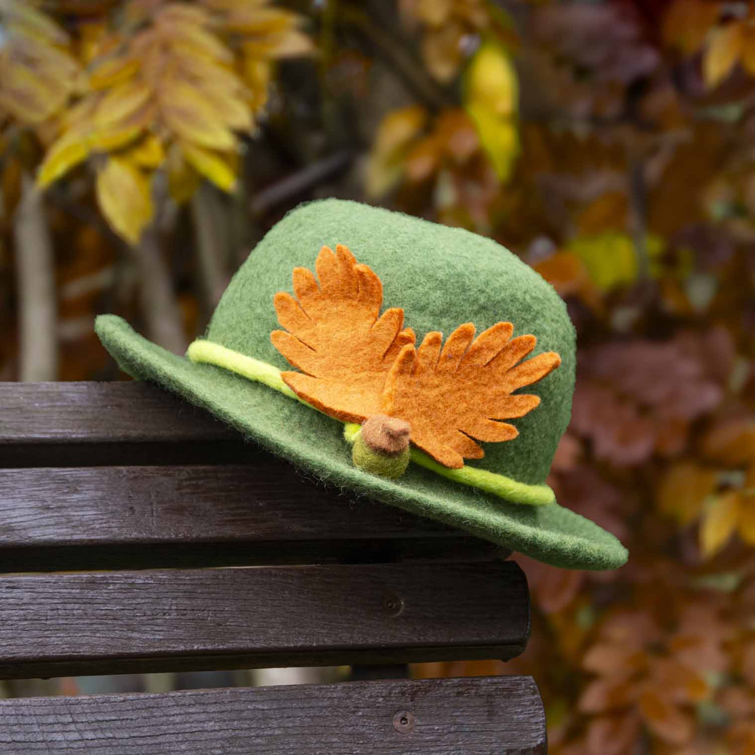 This fantastic felt hat is the perfect addition to your folk festival outfit! The bowler hat style features felted leaves and an acorn to really get you in the folk spirit!