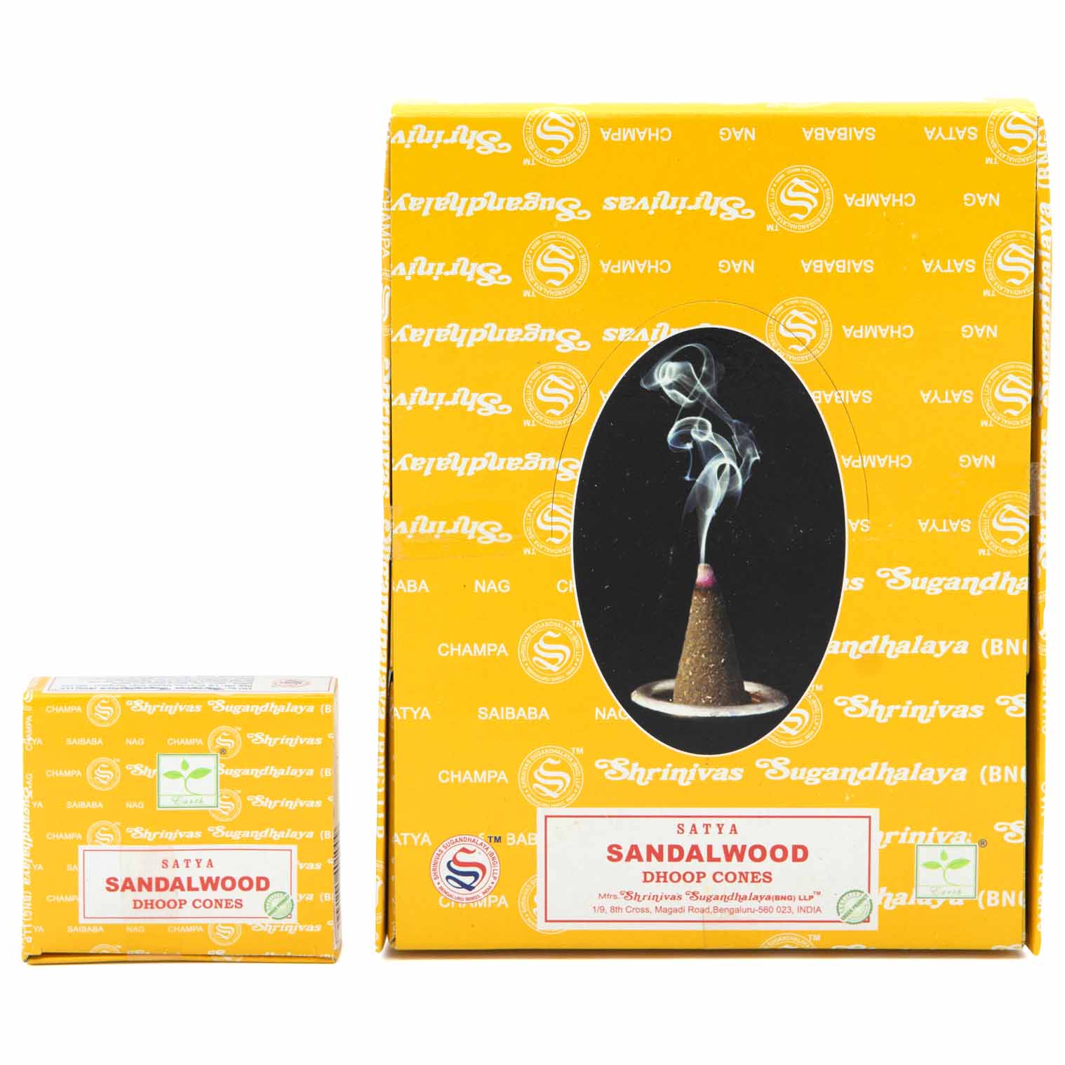 Made by the world famous incense manufacturer Satya Sai Baba, these Sandalwood dhoop cones are a wonderful way to create a fragrant and soothing setting in your home. 12 per packs.