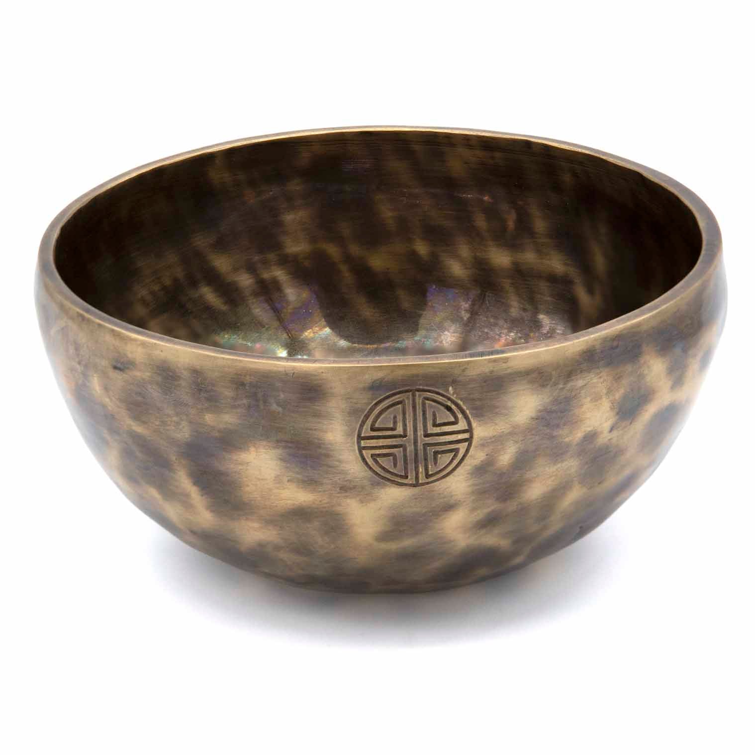 However, for full moon lunar bowls and other high-end bowls, there is an additional ten grams of silver and two grams of gold mixed into every 100kg bronze alloy mix. The gold and silver have no discernible effect on the sound, but rather, they represent the purifying aspects of the sun and moon and are said to have astral significance.