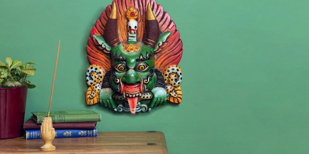 Nepalese masks are traditionally displayed above gateways to offer protection, or in rituals and celebrations to repesent their much worshipped gods.
