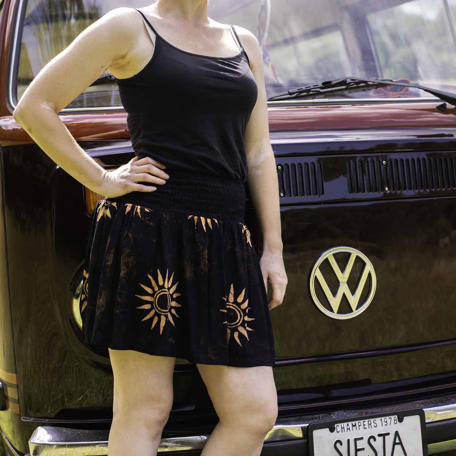 These fabulous skirts look great in all seasons and feature a wide elasticated waistband that can be worn high or low.