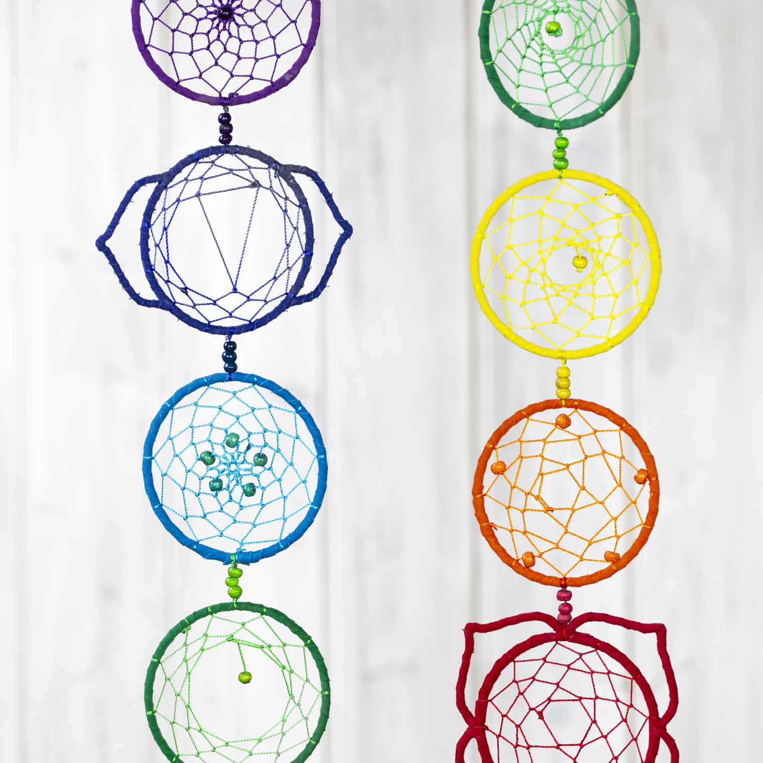 This incredible woven chain hanging features seven detailed designs, each representative of the seven chakras. Finished with a tassel at the base it can be hung easily and makes a great feature piece to your meditation space.