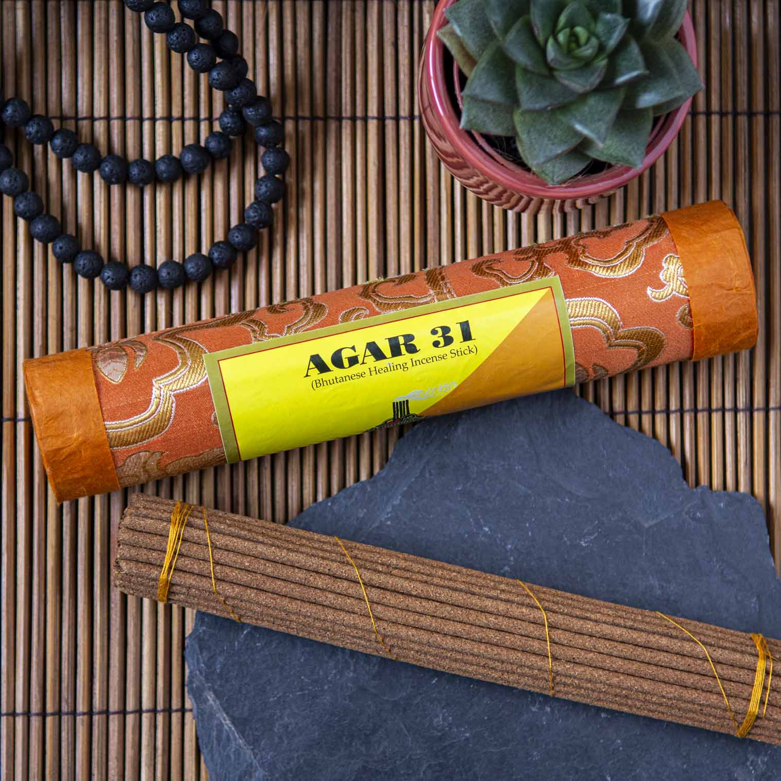 Discover these wonderful Agar 31 Bhutanese Healing incense sticks, a harmonious blend of precious medicinal herbs meticulously crafted to not only soothe and relax but also to delight your senses with their captivating packaging and the incredible power of Agar. Each incense stick embodies centuries-old Tibetan traditions, ensuring you experience the full essence of this sensory art form. The packaging, adorned with intricate designs and rich colours, adds a touch of elegance to your space. Its colourful appeal is matched only by the enchanting aroma of these sticks, which are enriched with captivating Agar, known for its divine fragrance and soothing properties.