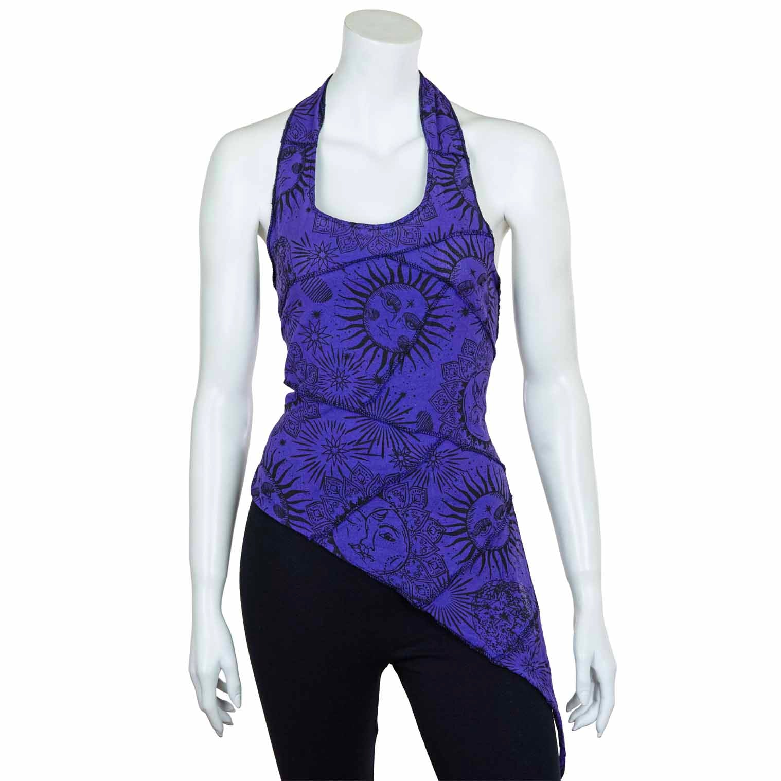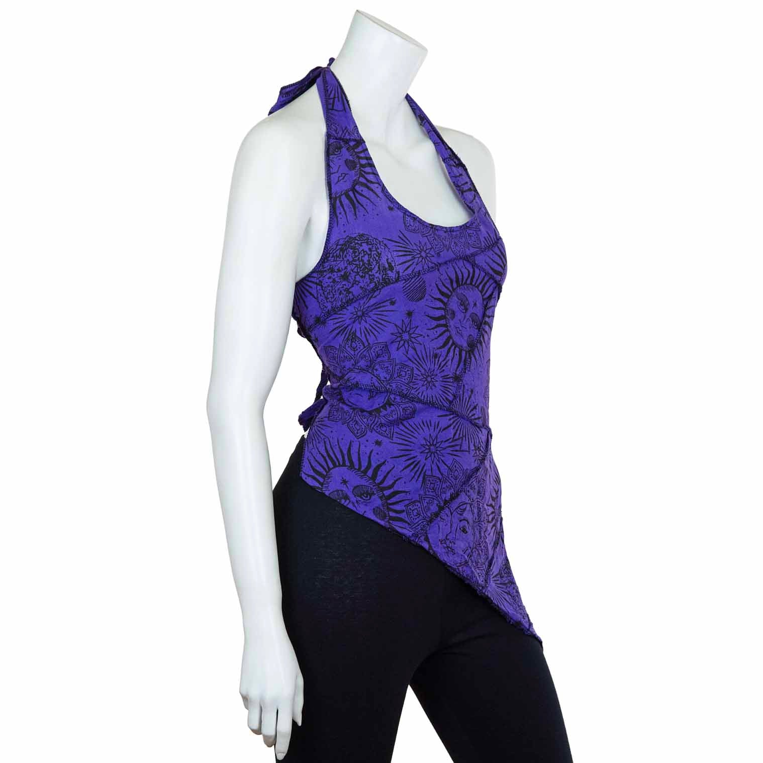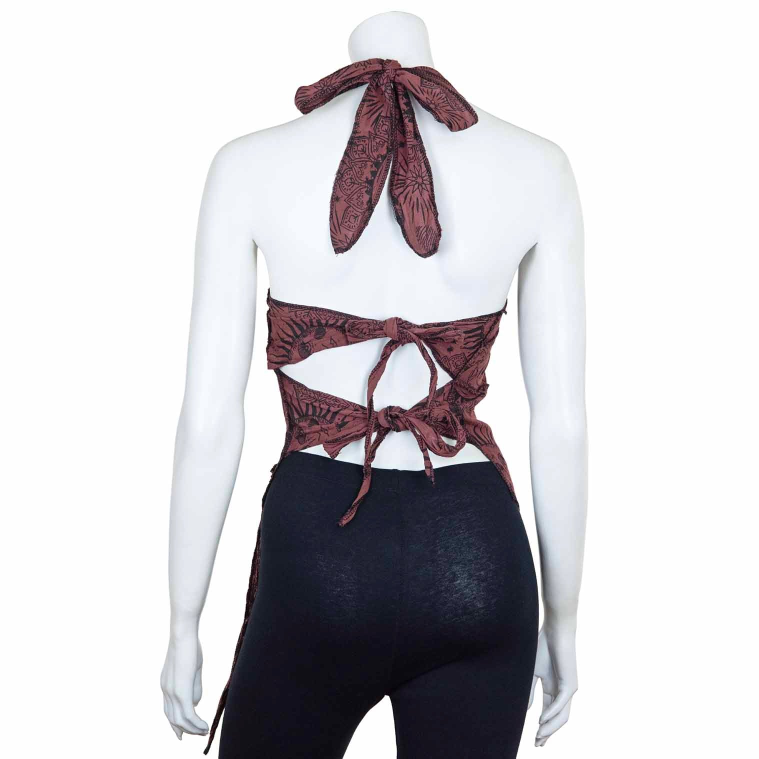 You'll be turning heads with this celestial halter top because the back is the real showstopper here! It is perfect for festivals, beach parties, or channeling those free-spirited hippy vibes.