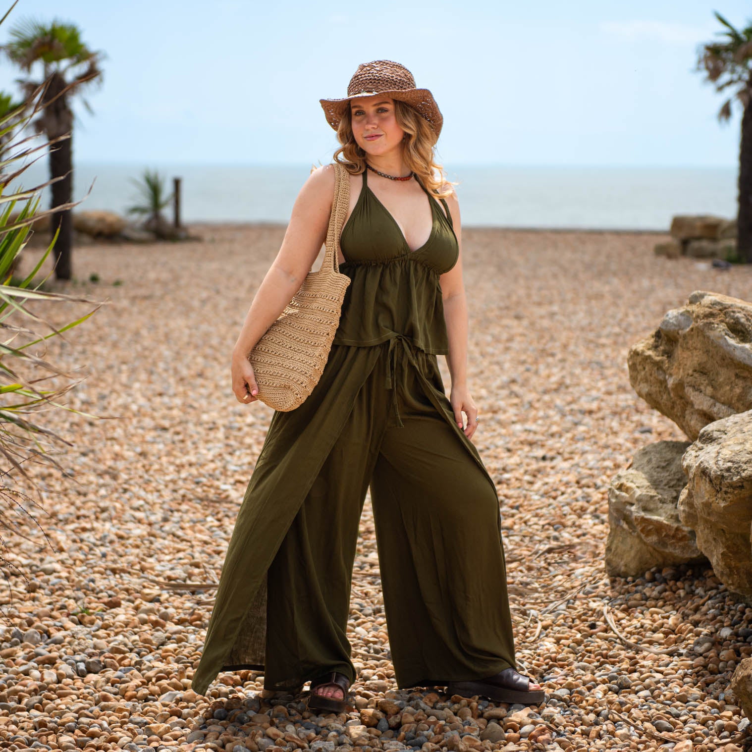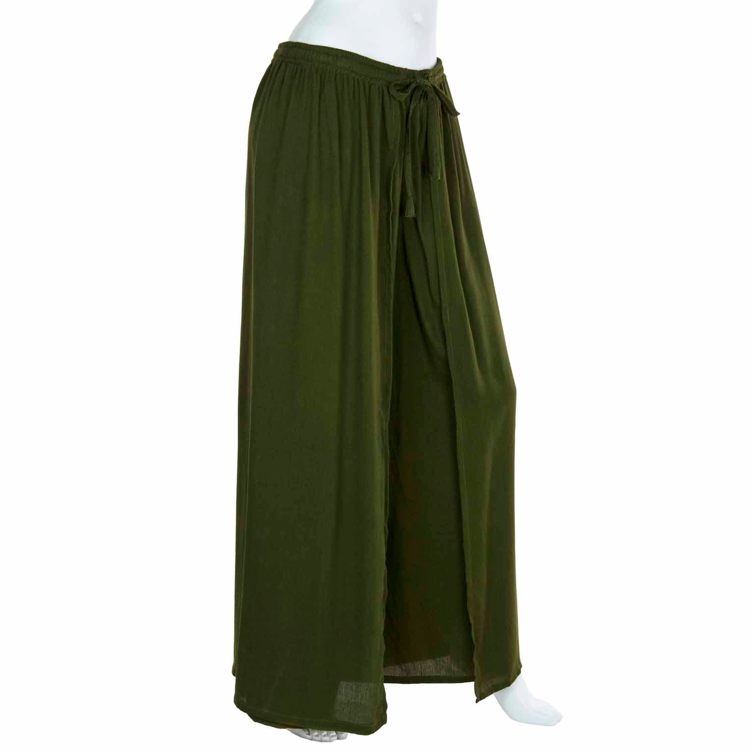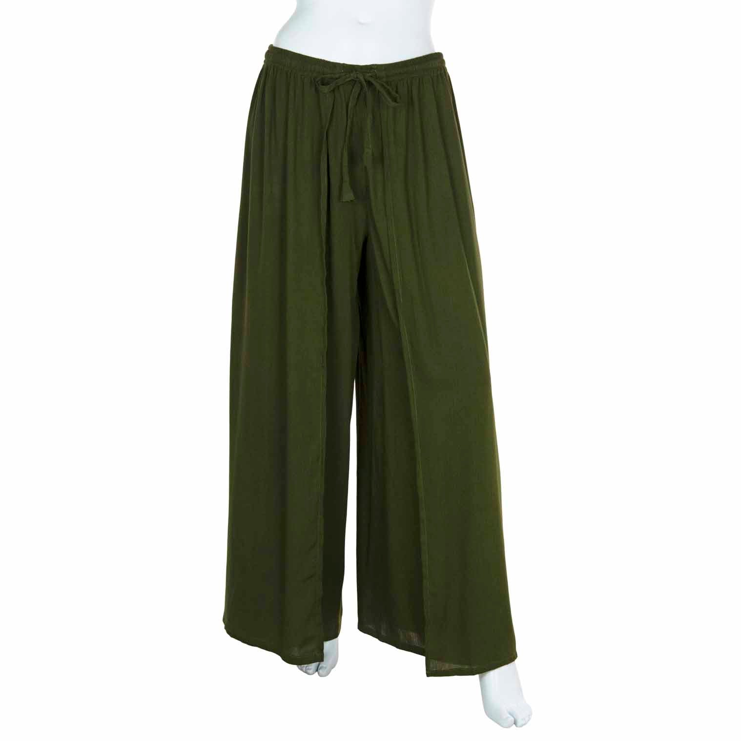 Flow through your day in these flattering palazzo style crinkle trousers. The dramatic ultra-wide leg silhouette is stylish and chic, while the faux wrap-style design adds visual interest - without any complicated ties or adjustments. They are perfect for beach holidays, summer evenings, or bringing effortless bohemian style to your everyday wardrobe.