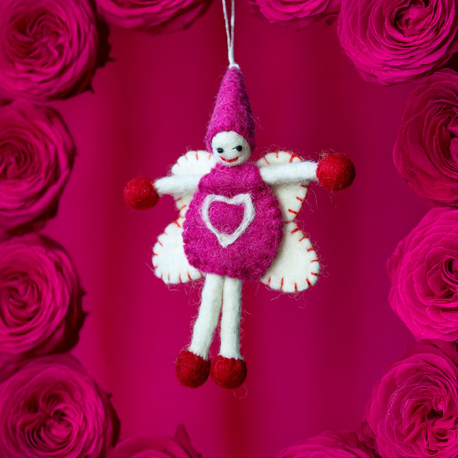 Send a special message of love with our colourful felt fairy keepsake. The cheerful decoration includes a miniature gift card for you to write your own personal message in. The fairy itself has a handy hanging loop for easy display.