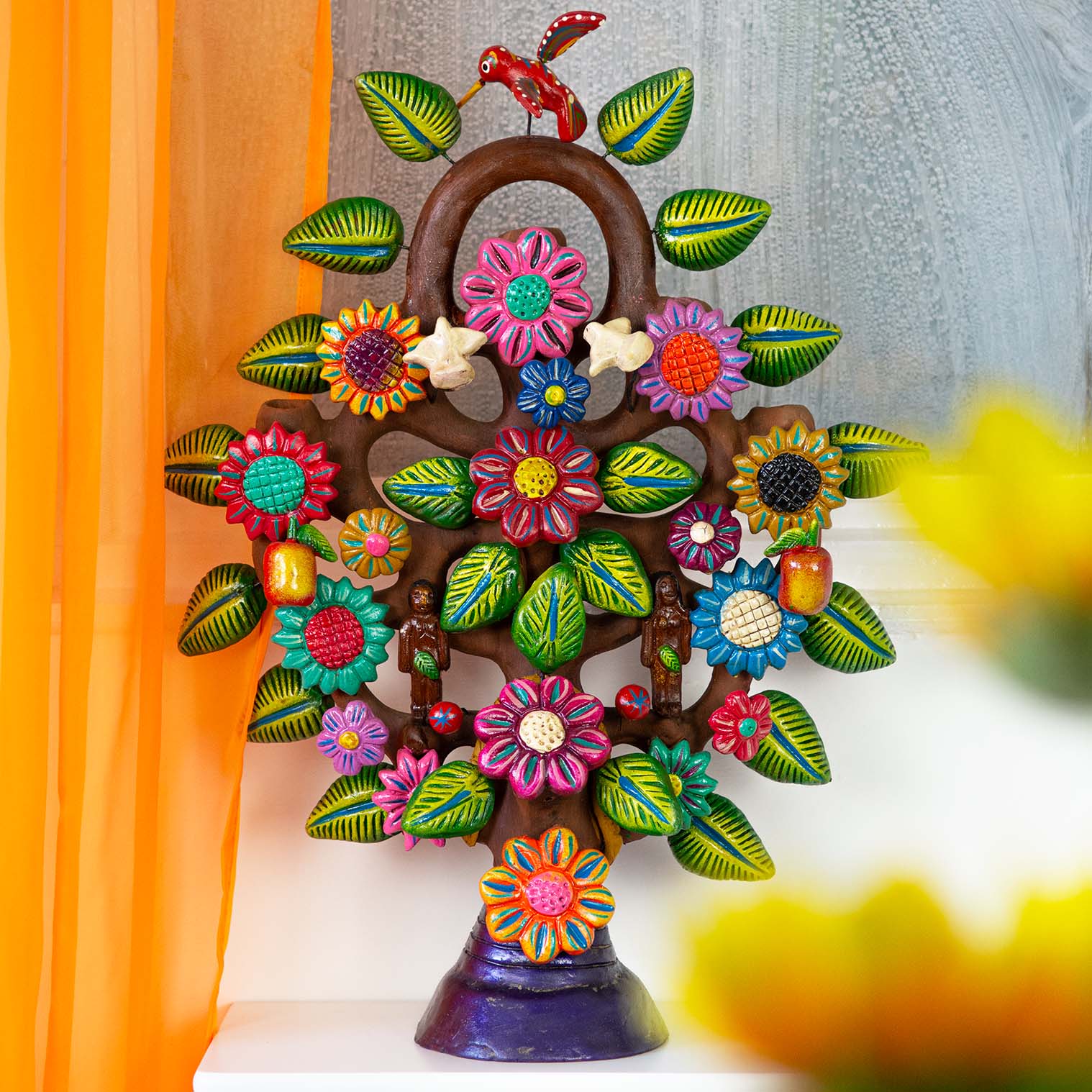This stunning hand crafted ceramic tree has been made by highly skilled artisans and has an exquisite level of detail. Each flower has been hand painted and attached to the main design by wire to create a vibrant tree of life display. It stands at 53cm high and would make a beautiful feature piece.