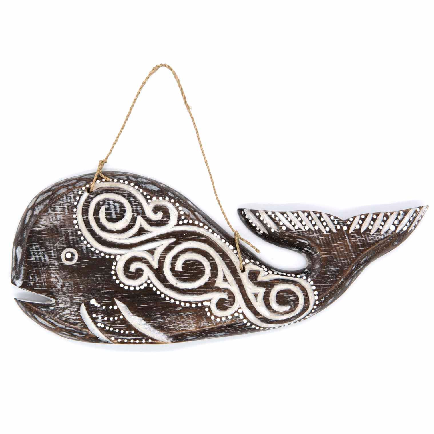 Hand Carved Round Whale Plaque