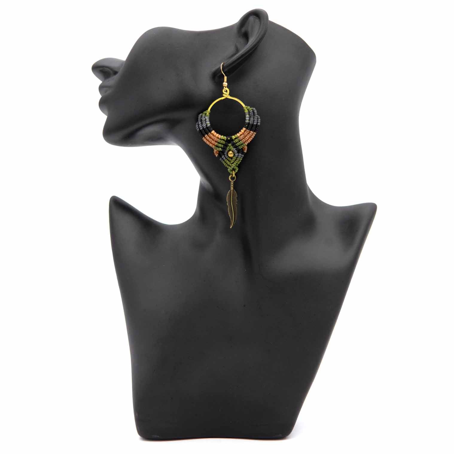 Go big with these boho style earrings! Pretty woven cotton hoops have been finished with a delicate feather earring and gold plated hooks.