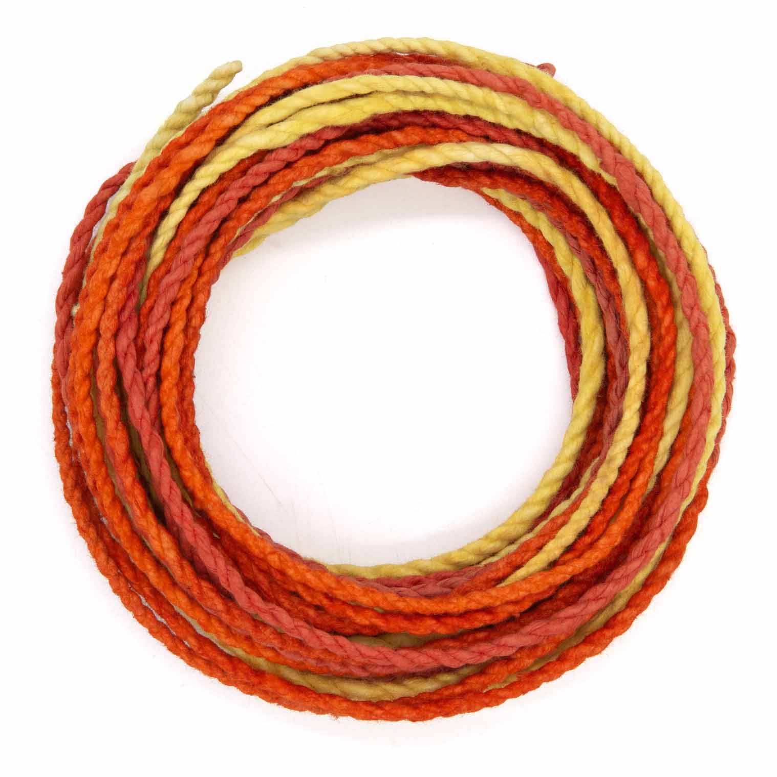 Saa paper twine originates from an age-old Asian craft tradition centred around the mulberry tree, whose fibrous bark has been transformed into paper for over a thousand years. The process involves stripping the inner bark, then pounding and washing it until the fibres break down into a pulp that can be shaped and dried. Once formed into sheets, the paper is carefully cut and twisted by hand into twine, creating those characteristic organic textures and slight irregularities that make each strand one-of-a-kind. The natural fibres readily absorb colour, resulting in these rich, saturated sunset hues that won't fade easily.